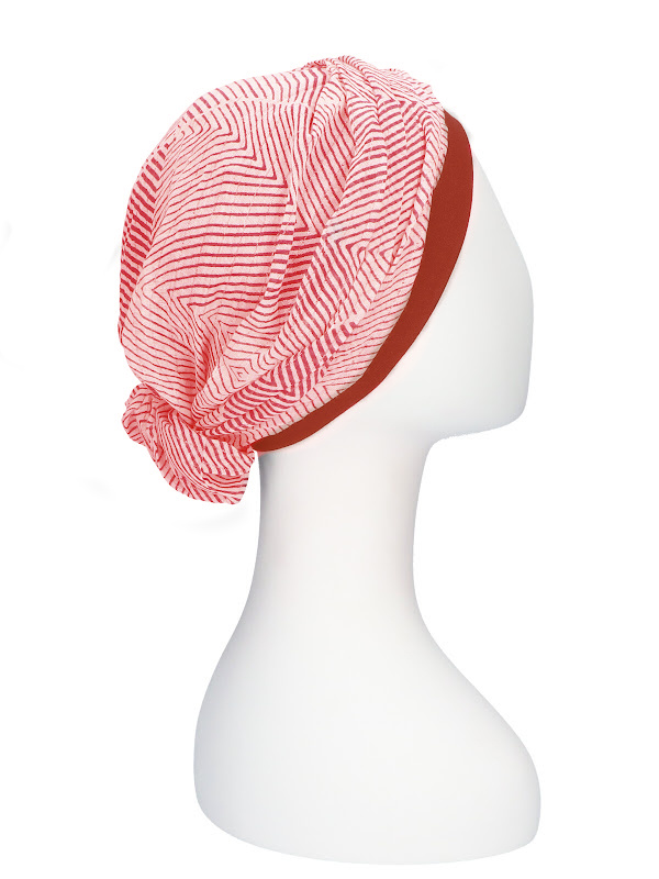 Er zijn Mano’s in één kleur of 2 kleuren combinaties zoals dit chemo mutsje én er zijn ook uitvoeringen met sjaals met meerdere kleuren of prints, zoals deze Mano Fantaisie.