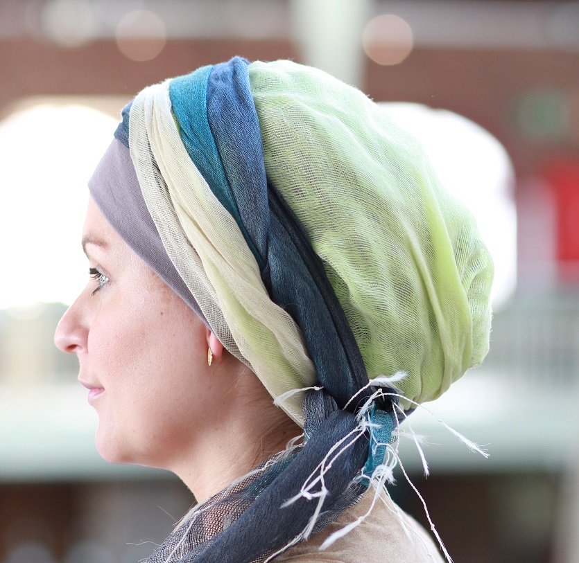 Speciaal voor de warmere dagen en zomerse warmte heeft Lookhatme de Sofia ontworpen. De Sofia is een mooie sjaal vast gestikt aan een zachte stretch hoofdband gemaakt van Thermo°Cool™. Hierdoor wordt de Sofia ook wel een sjaal-band genoemd. De sjaal-banden zijn licht in gewicht en lekker luchtig op je hoofd.De sjaal-band Sofia is geschikt voor een hoofdmaat van 50 cm tot 59 cm maar doordat er rek zit in de band kan het ook gedragen worden bij een iets grotere hoofdmaat. De band voelt dan wel wat strakker aan.